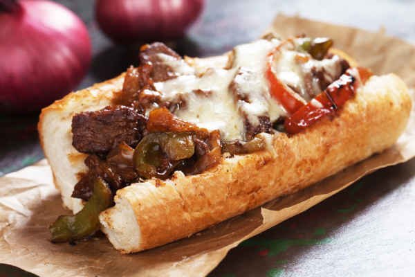 Juicy, tender steak sandwich served on a toasted hero roll with sautéed onions and peppers.